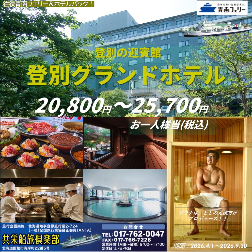 <旅行商品>フェリー&ホテルパック『登別グランドホテル』!