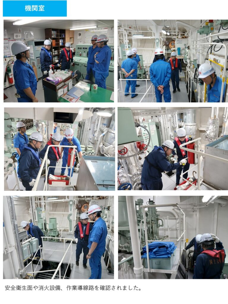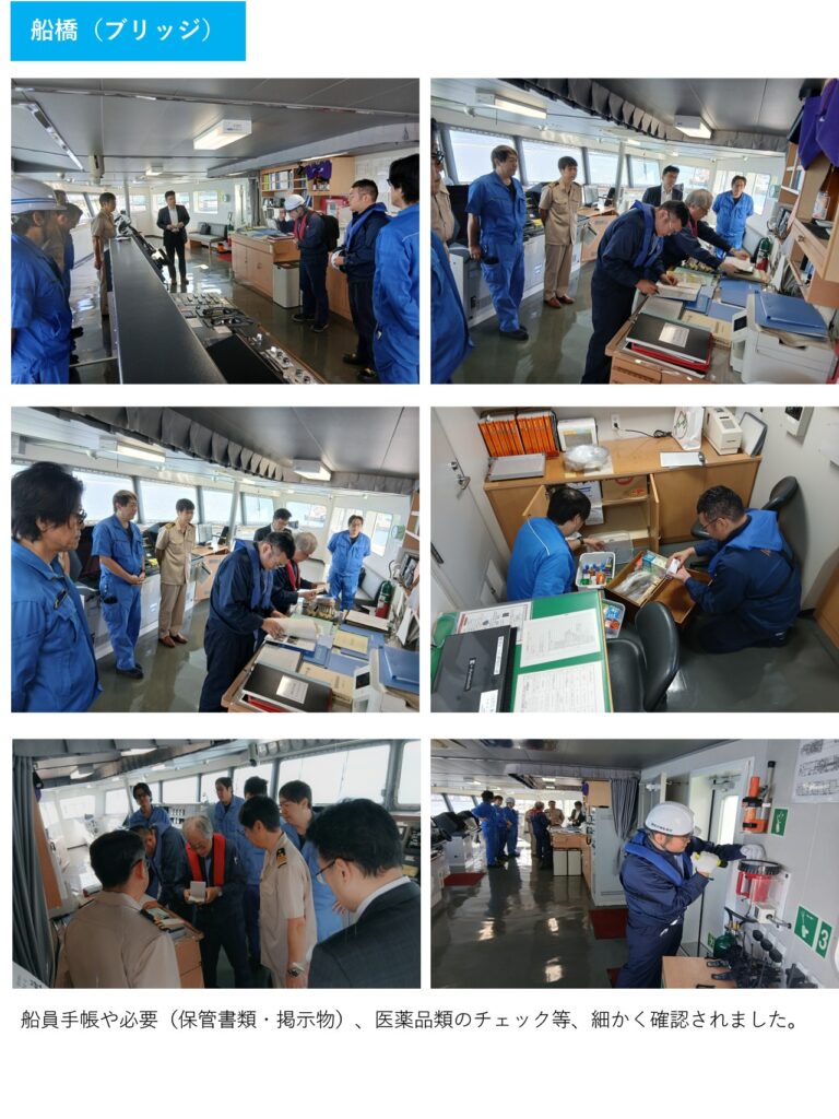 船員手帳等の確認、船内を巡回し危険個所の表示・標識の確認、安全衛生チェックリストの活用指導。