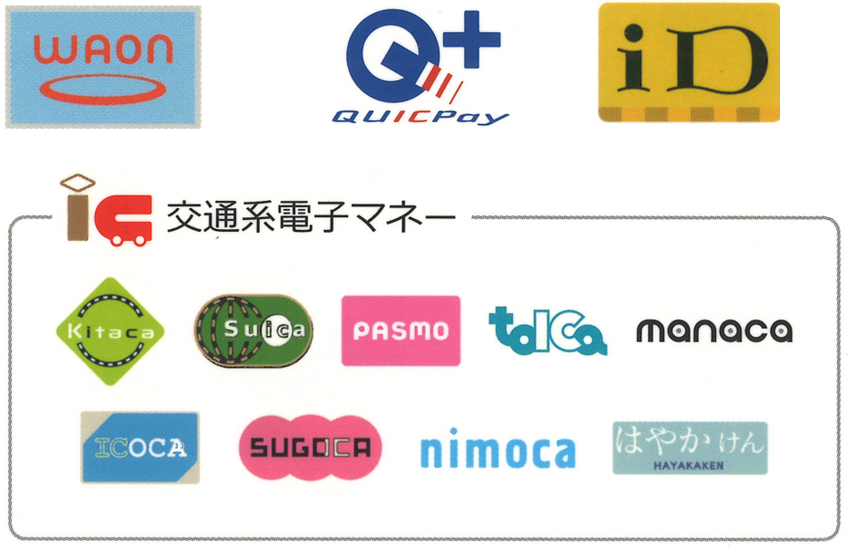 iD、QUICKPay、WAON、交通系電子マネー(Suica等)